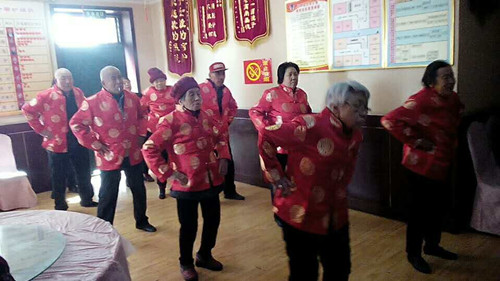 带领老人们晨练